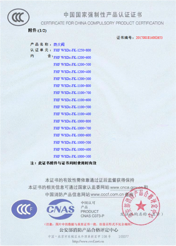 產(chǎn)品全通過(guò)國(guó)家消防檢測(cè)中心檢測(cè),獲得CCC證書